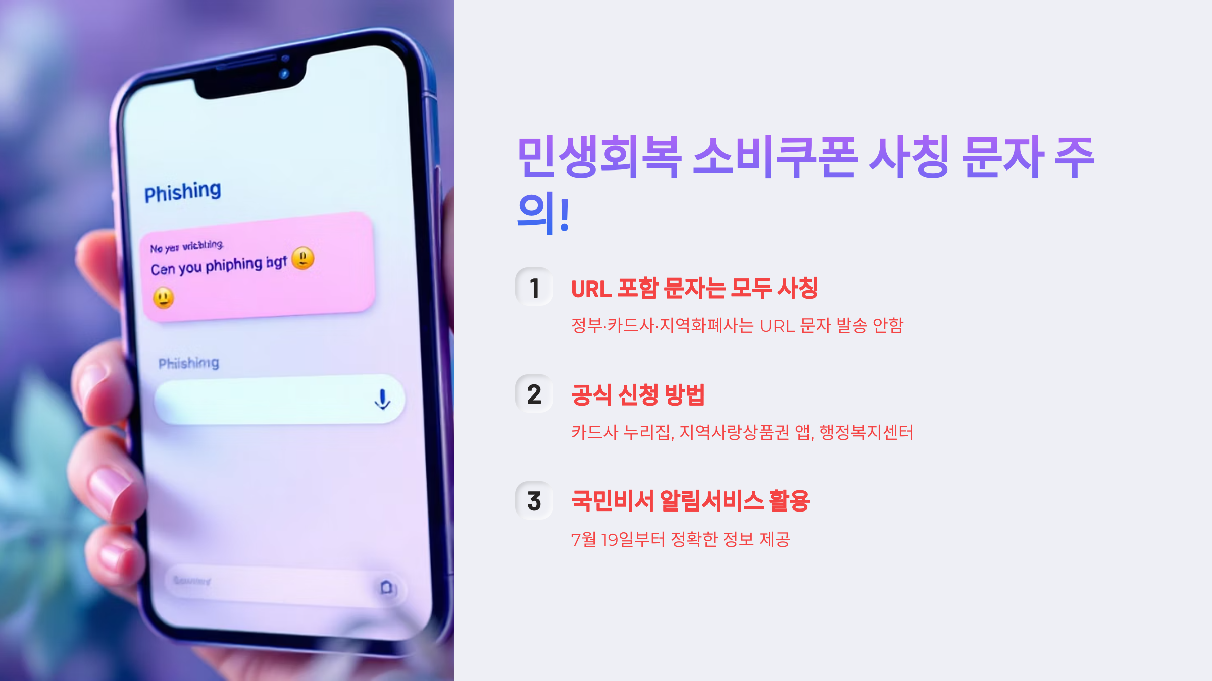 정확한 정보를 통해 사칭 피해를 방지하고, 꼭 필요한 국민들이 빠짐없이 소비쿠폰을 수령하길 바랍니다.